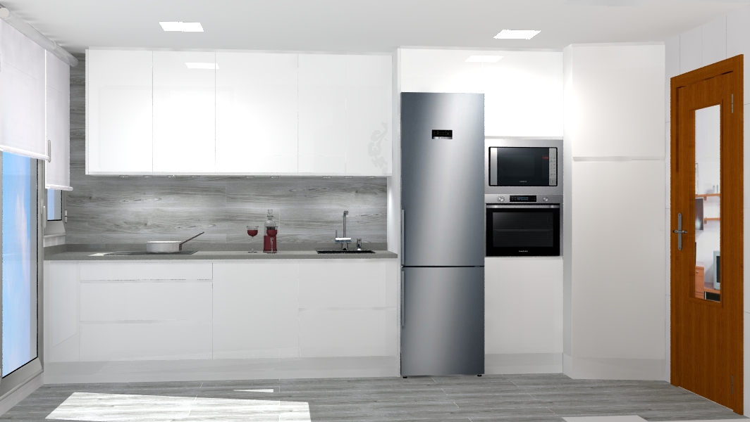 Proyecto de reforma parcial de espacio cocina y mobiliario nuevo. Eliminación de suele existente, para la instalación de un suelo de mejores prestaciones tanto estéticas como de resistencia. Combinado con entrepaño de cocina a juego con el nuevo suelo. La línea de cocina en materiales más atemporales y minimalistas, nos permiten combinar con tonos grises, consiguiendo un efecto industrial de cocina según las tendencias actuales.