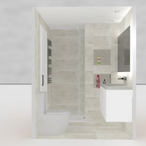 Reforma de baño en Logroño. Destaca por la instalacion de una ducha antideslizante a ras de suelo para integrar el material en el espacio. Se amplia la profundidad visual con una instalacion de trasdosado en zona humeda, que empleamos para el almacenaje de los productos a utilizar. Completamos el diseño con un Mueble de Baño, de lineas Modernas y rematado con una encimera a medida fabricada en los mismos materiales que el plato de ducha y color. Rematamos el diseño con espejo a medida y griferia empotrada en el frontal del mueble de baño, para conseguir una sensacion minimalista y limpia a la vista.